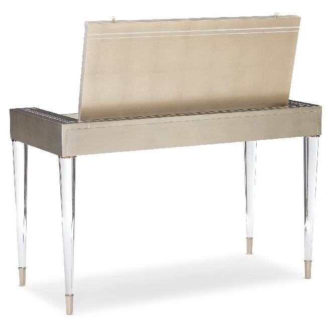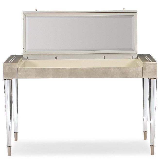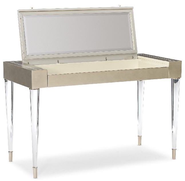 Элегантный туалетный столик от американского премиум бренда Caracole. Установленный на невидимых акриловых ножках стол Moment Of Clarity похож на изящную шкатулку с секретом: достаточно лишь открыть крышку — и модель превратится в удобный туалетный столик с зеркалом и ящиком для хранения косметики.