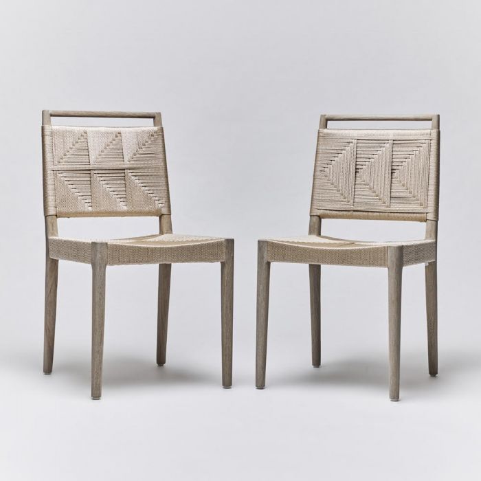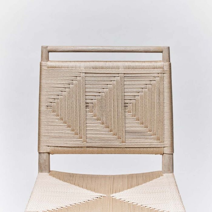 Стул Augustine от премиального американского бренда Interlude Home изготавливается из тикового дерева. Сидение и спинка оплетаются веревкой в цвете шампанского.