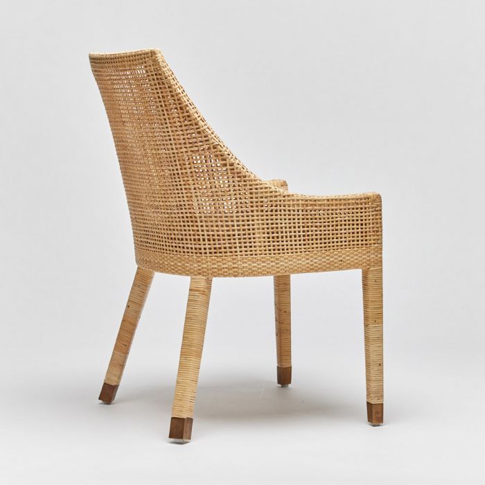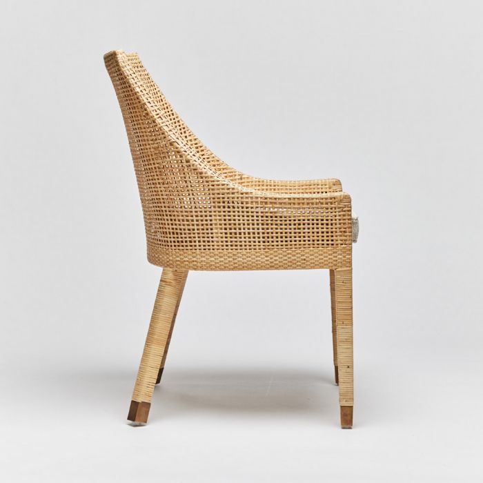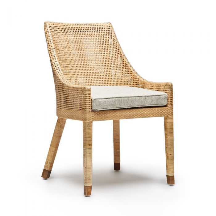 Стул Boca от премиального американского бренда Interlude Home изготавливается из натурального ротанга и металла в отделке состаренная латунь. Сидение обивается тканью различных цветов и состава.