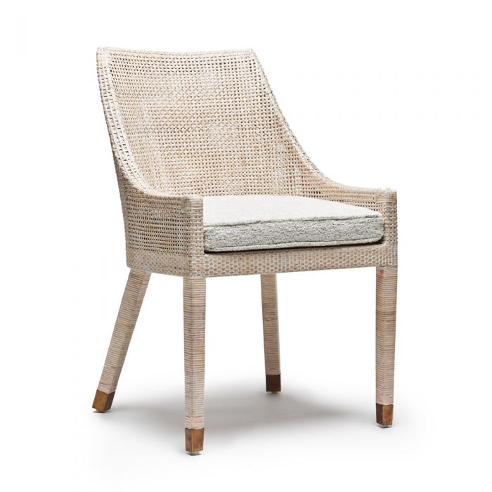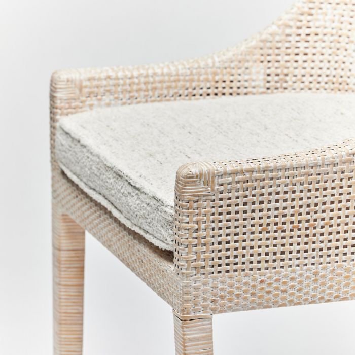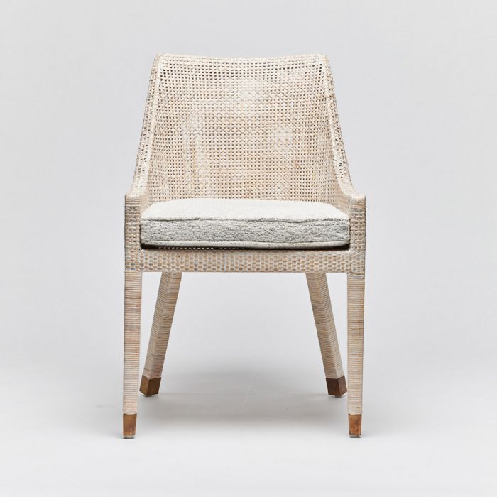Стул Boca от премиального американского бренда Interlude Home изготавливается из натурального ротанга и металла в отделке состаренная латунь. Сидение обивается тканью различных цветов и состава.