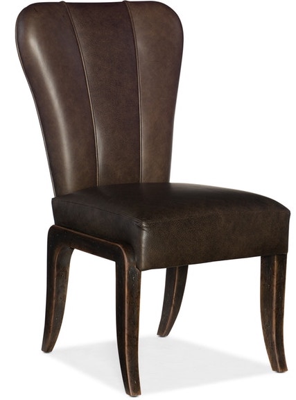 Обеденный стул CRAFTED от премиального американского бренда HOOKER FURNITURE. Cиденье и спинка с отделкой кожаной обивкой и мягким наполнителем. Корпус выполнен из массива твердых пород древесины и каучукового дерева. Декорирован мебельными гвоздями, двойным швом.