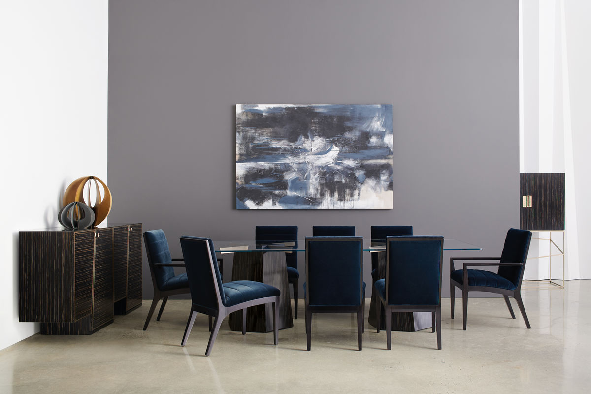 Стул Edge от премиального американского бренда Caracole изготавливается из азиатской твердой древесины в отделке эклипс. Сидение и спинка обиваются тканью. Также доступен стул без подлокотников.
