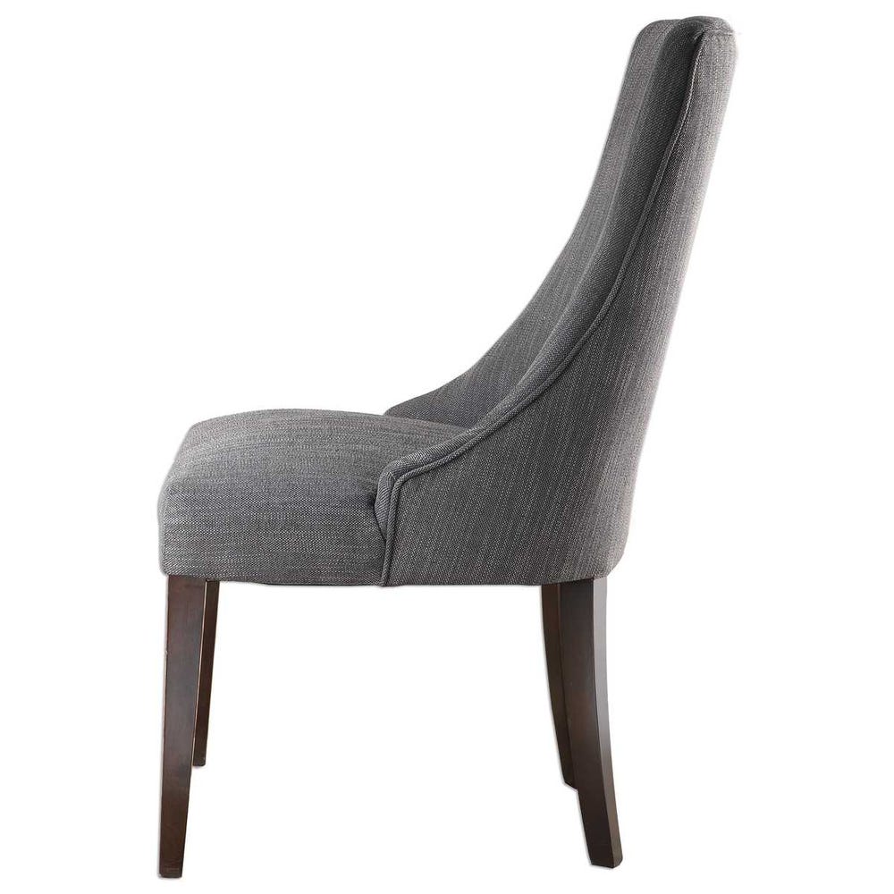 Стул Patamon от премиального американского бренда Uttermost выполнен из дерева в отделке темный орех. В качестве обивки используется ткань угольно-серого цвета.
