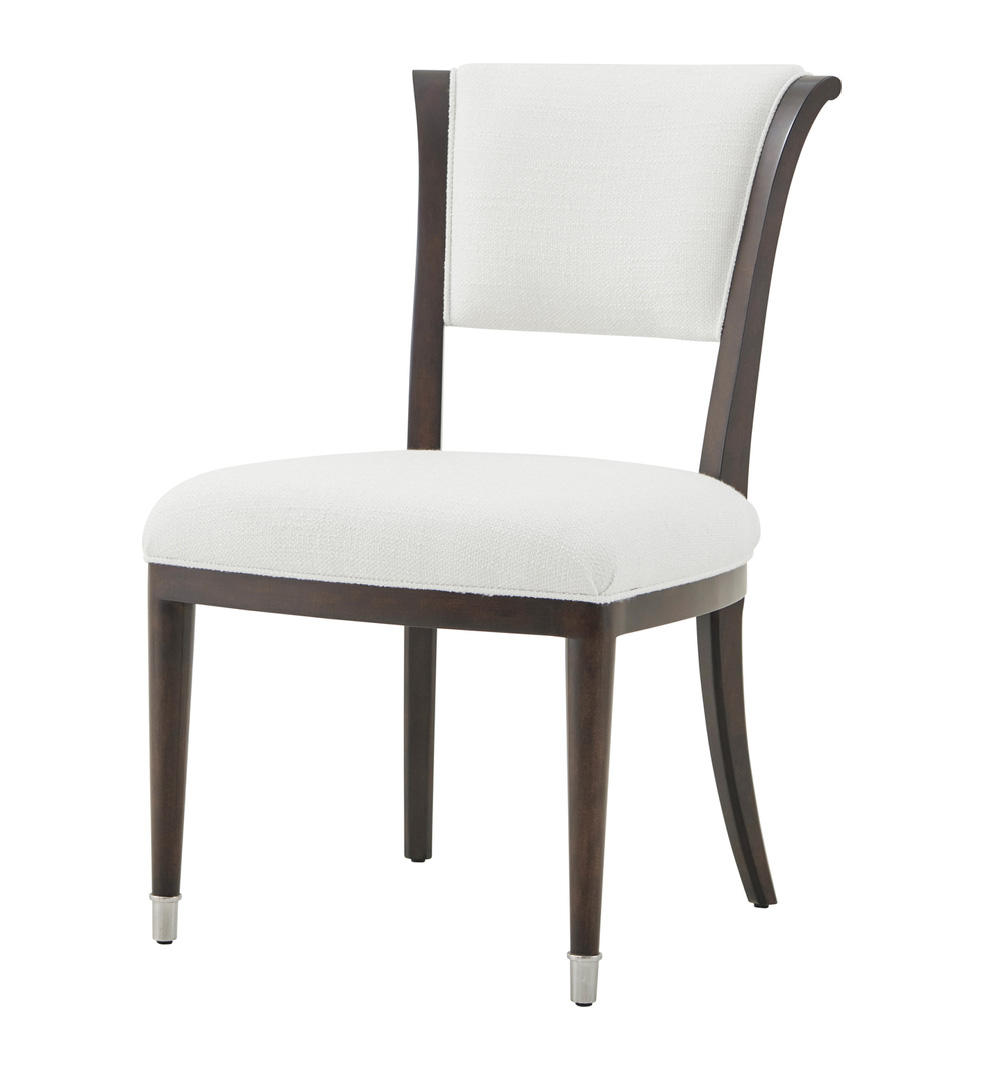 Стул Spencer London от американского премиального бренда Theodore Alexander изготавливается из массива дерева. Металлические элементы в латунной отделке. Сидение и спинка обиваются тканью.