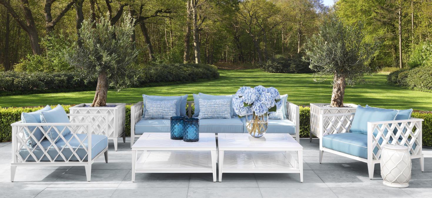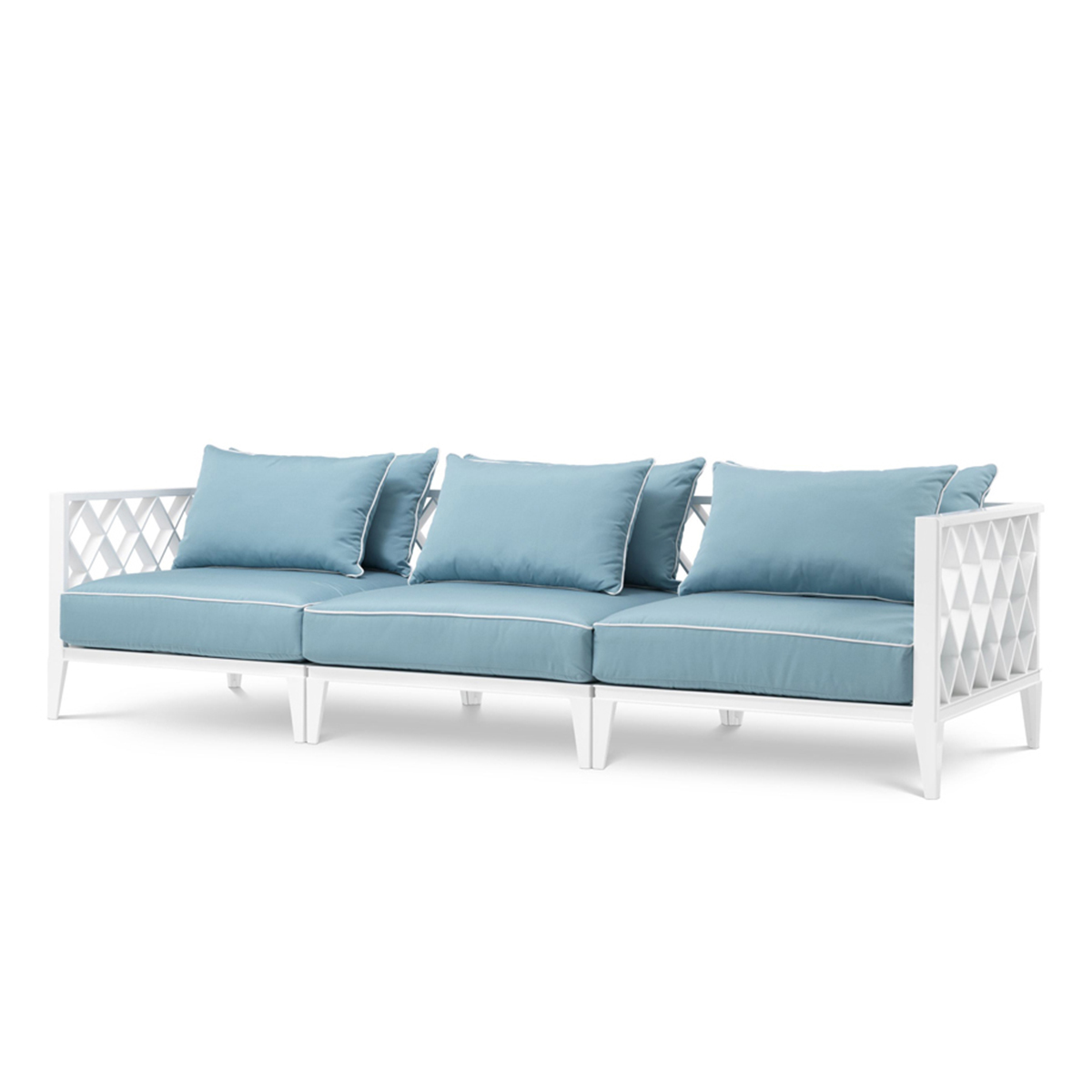 Диван Ocean Club от премиального американского бренда Couture Jardin. Резная рама покрытая белым финишем, и мягкие плюшевые подушки в голубом цвете, отделанные белым кантом, подарят ультра-комфорт. Благодаря своему изысканному внешнему виду и сверхпрочным материалам этот предмет мебели станет стильным дополнением к вашему зимнему саду или жилому пространству на открытом воздухе.
