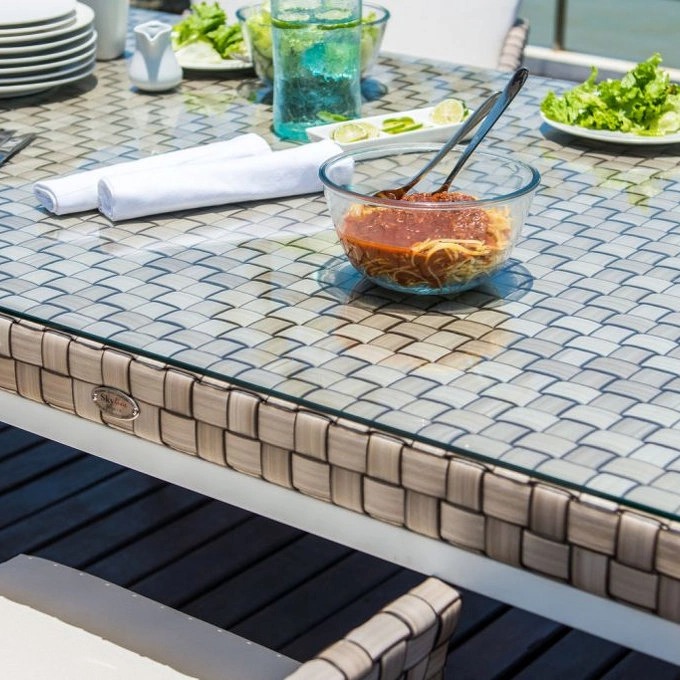 Стол Brafta от премиального испанского бренда Skyline Design выполнен в современном стиле из искусственного ротанга испанскими мастерами вручную. Каркас из алюминиевого профиля. Стол предназначен для использования на террасе, в саду или гостиной. Дополнительно можно приобрести съемные чехлы для хранения.