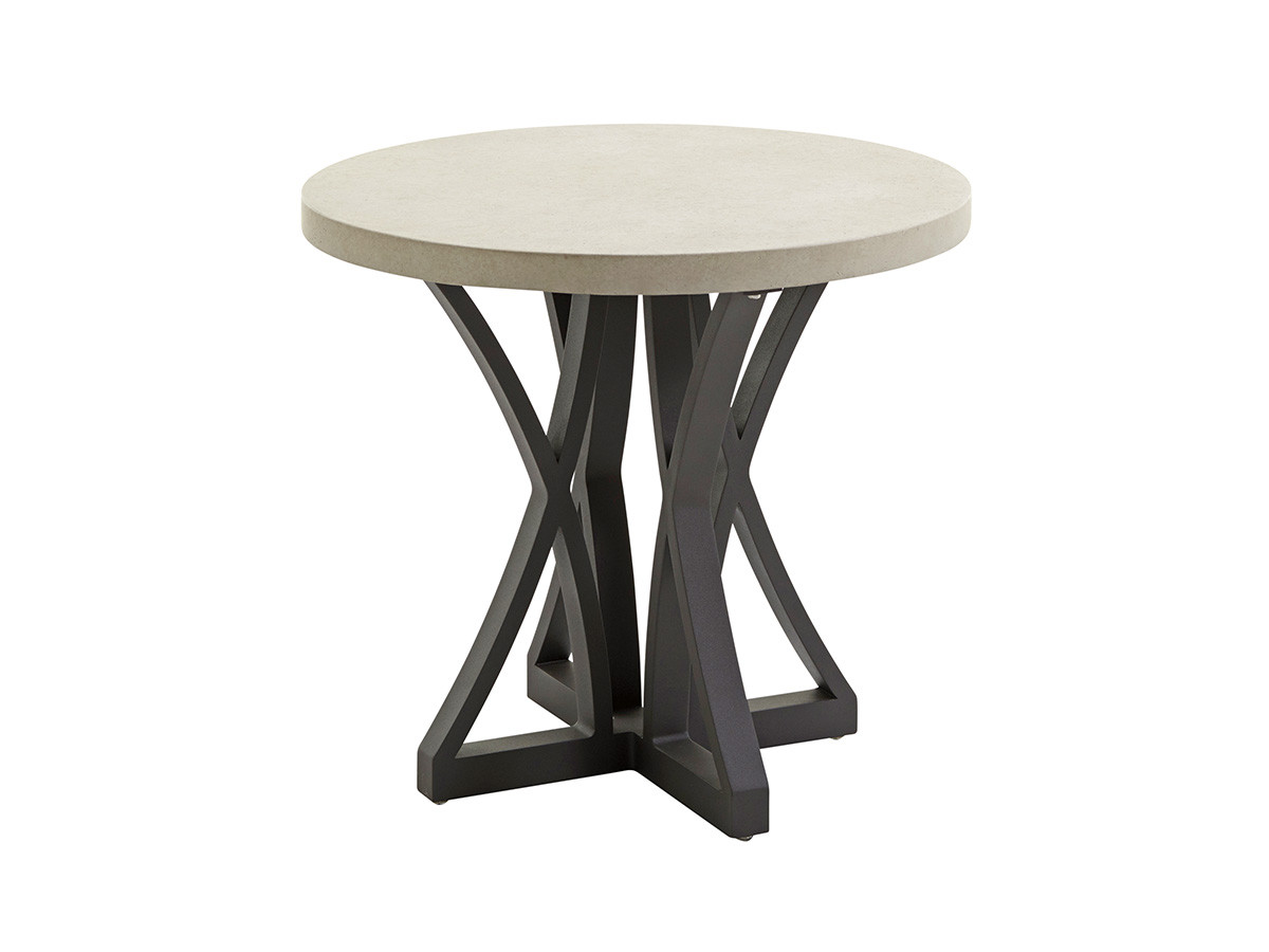 Уличный столик Cypress Point Ocean Terrace из одноименной коллекции от премиального американского бренда Tommy Bahama для Lexington. Этот столик перекликается с обеденными столами благодаря столешнице из искусственного камня и интересному алюминиевому основанию из соединенных под углом элементов. Основание с отделкой состаренное железо дополняет столешницу имитирующую шлифованный известняк. Коллекция Cypress Point Ocean Terrace сочетает эстетику и практичность: V‑образный узор плетения из лозы в насыщенном сером оттенке создаёт нейтральную основу для ярких тканей, а алюминиевые каркасы с отделкой под состаренное железо добавляют индустриальный шарм. Столешницы из камня Weatherstone имитируют шлифованный известняк, а разнообразие форм сидений (изогнутые, прямые, круглые) делает террасу подходящей для любых открытых пространств — даже самых просторных.