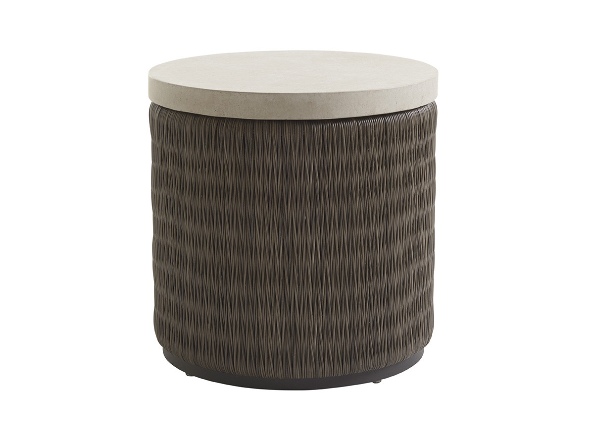Уличный столик Cypress Point Ocean Terrace из одноименной коллекции от премиального американского бренда Tommy Bahama для Lexington. Столешница из искусственного камня выглядит как отполированный известняк, прикрепленный к плетеному основанию с V-образным узором. Сочетание насыщенного серого цвета и более светлого оттенка известняка — идеальная цветовая палитра. Коллекция Cypress Point Ocean Terrace сочетает эстетику и практичность: V‑образный узор плетения из лозы в насыщенном сером оттенке создаёт нейтральную основу для ярких тканей, а алюминиевые каркасы с отделкой под состаренное железо добавляют индустриальный шарм. Столешницы из камня Weatherstone имитируют шлифованный известняк, а разнообразие форм сидений (изогнутые, прямые, круглые) делает террасу подходящей для любых открытых пространств — даже самых просторных.