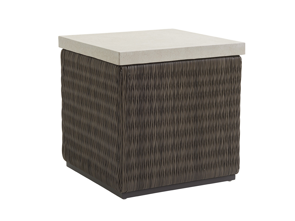 Уличный столик Cypress Point Ocean Terrace из одноименной коллекции от премиального американского бренда Tommy Bahama для Lexington. Столешница из искусственного камня выглядит как отполированный известняк, прикрепленный к плетеному основанию с V-образным узором. Сочетание насыщенного серого цвета и более светлого оттенка известняка — идеальная цветовая палитра. Коллекция Cypress Point Ocean Terrace сочетает эстетику и практичность: V‑образный узор плетения из лозы в насыщенном сером оттенке создаёт нейтральную основу для ярких тканей, а алюминиевые каркасы с отделкой под состаренное железо добавляют индустриальный шарм. Столешницы из камня Weatherstone имитируют шлифованный известняк, а разнообразие форм сидений (изогнутые, прямые, круглые) делает террасу подходящей для любых открытых пространств — даже самых просторных.
