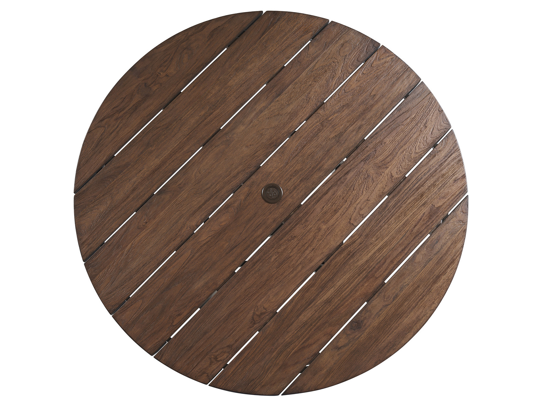 Уличный стол Kilimanjaro из одноименной коллекции от премиального американского бренда Tommy Bahama для Lexington. Обеденный стол имеет открытую конструкцию с планками из тика, расположенными по всей длине столешницы. Архитектурное основание с элегантными ножками дополнено поперечной перекладиной, на которую можно установить зонт. В столешнице есть алюминиевая вставка с логотипом TB, которая скрывает отверстие для зонта, когда он не используется. Коллекция Kilimanjaro вдохновлена экспедициями в живописные уголки мира и гармонично сочетает оригинальный дизайн, местный колорит, качественные материалы и мастерство исполнения. Изделия выполнены в стиле Tommy Bahama: их украшает устойчивый к погодным условиям плетёный материал насыщенного табачного цвета. Столешницы изготовлены из натурального тика и покрыты защитным лаком — это упрощает уход за поверхностью. Алюминиевые основания с порошковым покрытием цвета эспрессо добавляют коллекции современный акцент.