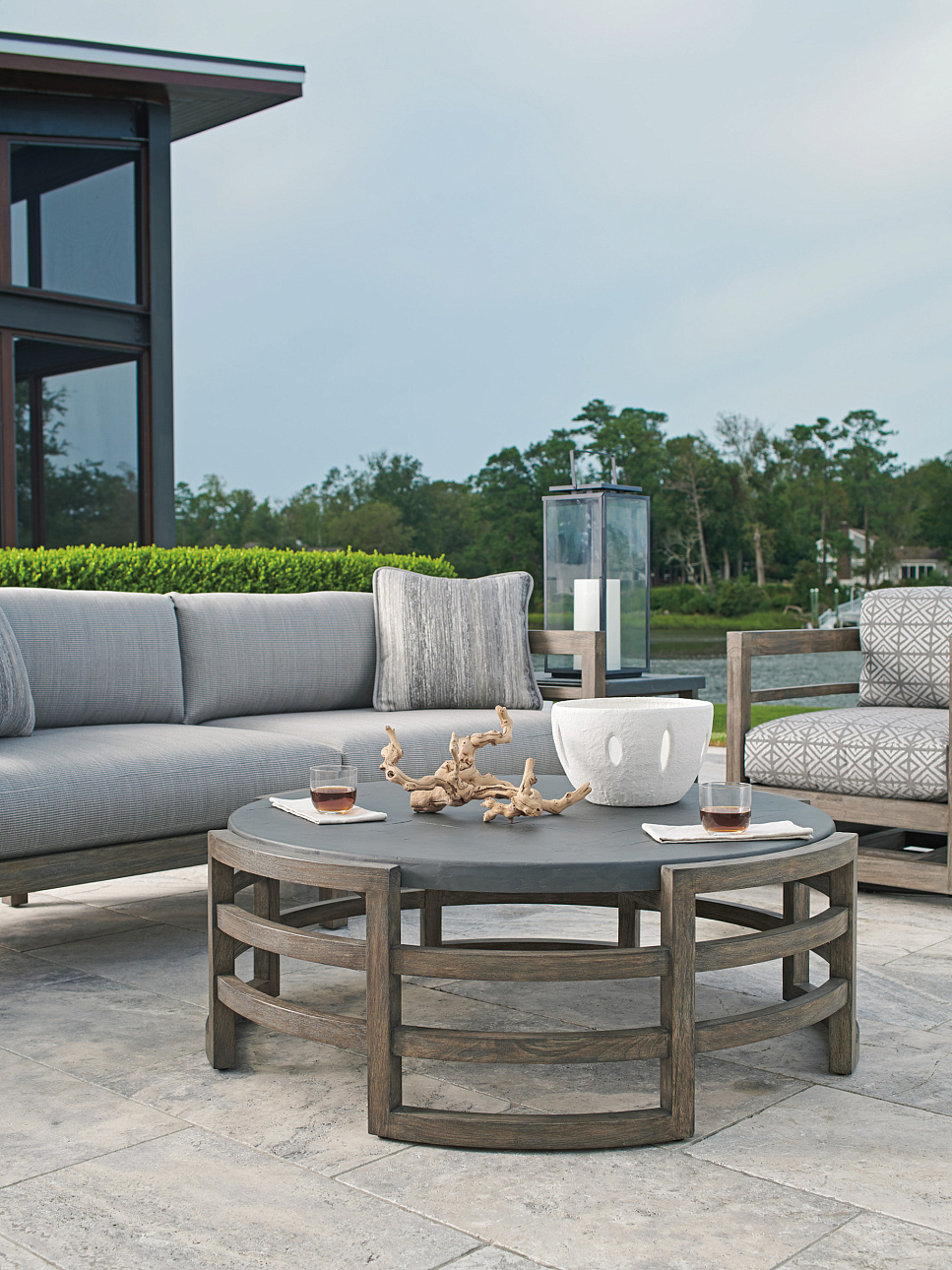 Уличный столик La Jolla из одноименной коллекции от премиального американского бренда Tommy Bahama для Lexington. Коктейльный столик служит центральным элементом композиции. Его столешница из искусственного сланца сочетается с эффектным современным основанием. La Jolla — непринуждённая интерпретация современного стиля, органично вписывающаяся в любое пространство. Скруглённые углы и мягкие сиденья с обивкой смягчают паназиатские мотивы в дизайне, создавая атмосферу уюта. Мебель изготовлена из экологически чистого индонезийского тика: специальная отделка подчёркивает природную текстуру дерева и надёжно защищает его от внешних воздействий. Столешницы из искусственного сланца на столах добавляют интересных текстур, а разнообразие практичных тканей поможет воплотить любой замысел — от лаконичного нейтрального до смелого и выразительного.