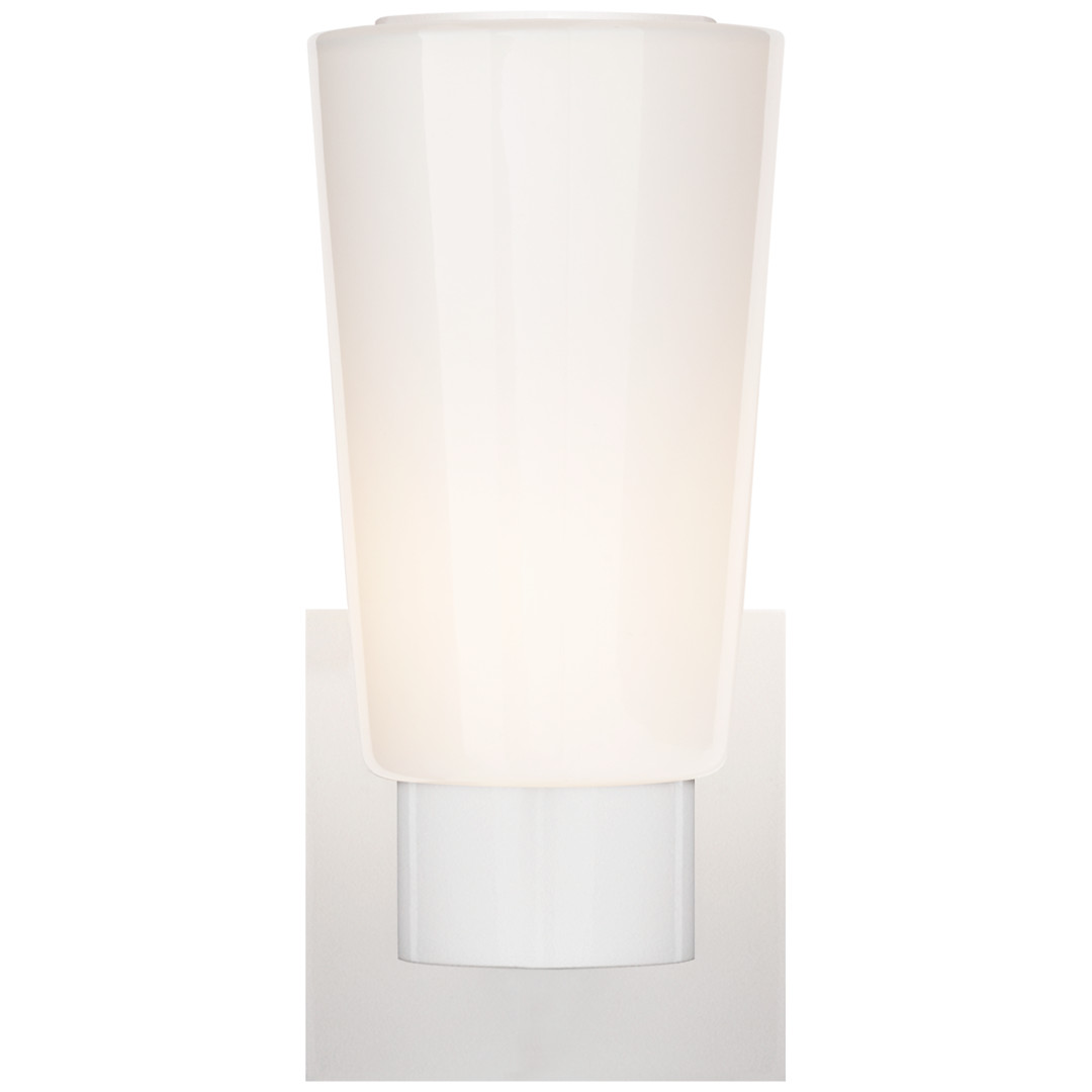 Бра Acme от премиального американского бренда Visual Comfort. Дизайнер Barbara Barry. Стальной корпус окрашен в белый декоративный цвет. Плафон из белого стекла. Работает от лампочки максимальной мощностью 60 Вт. Размер крепления: 10 х 10 см.