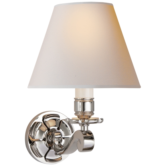 Бра Bing от премиального американского бренда Visual Comfort. Дизайнер Alexa Hampton. Стальной корпус окрашен в цвет полированного никеля. Представлен в стиле настенного подсвечника. Абажур из бумаги натурального оттенка. Работает от лампочки максимальной мощностью 60 Ватт, E26. Размер крепления 11 см