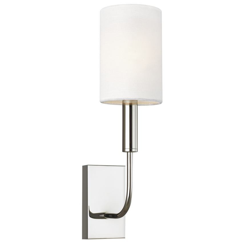 Настенная лампа Brianna от премиального американского бренда Generation Lighting изготавливается из металла в отделке полированный никель. Абажур выполняется из льна белого цвета. Светильник работает от лампочки максимальной мощностью 60 Вт. Основание: 13 х 8 см.