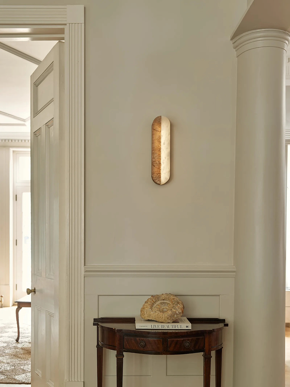 Настенная лампа Dua от премиального английского бренда Heathfield & Co изготавливается из металла в латунной отделке. Абажур выполняется из алебастра. Светильник работает от LED лампочки максимальной мощностью 5,5 Вт, 150 Лм.