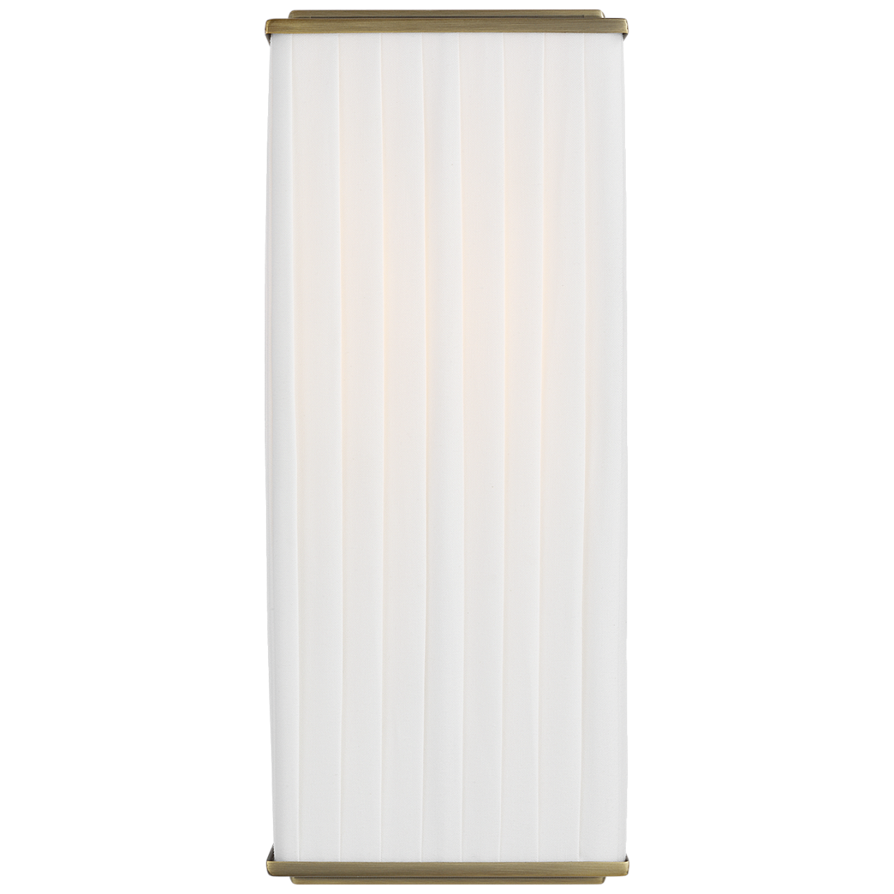 Настенная лампа Esther от премиального американского бренда Generation Lighting изготавливается из металла в отделке полированная латунь и плиссированного льна. Светильник работает от лампочки максимальной мощностью 60 Вт. Основание: 3*12*22 см.