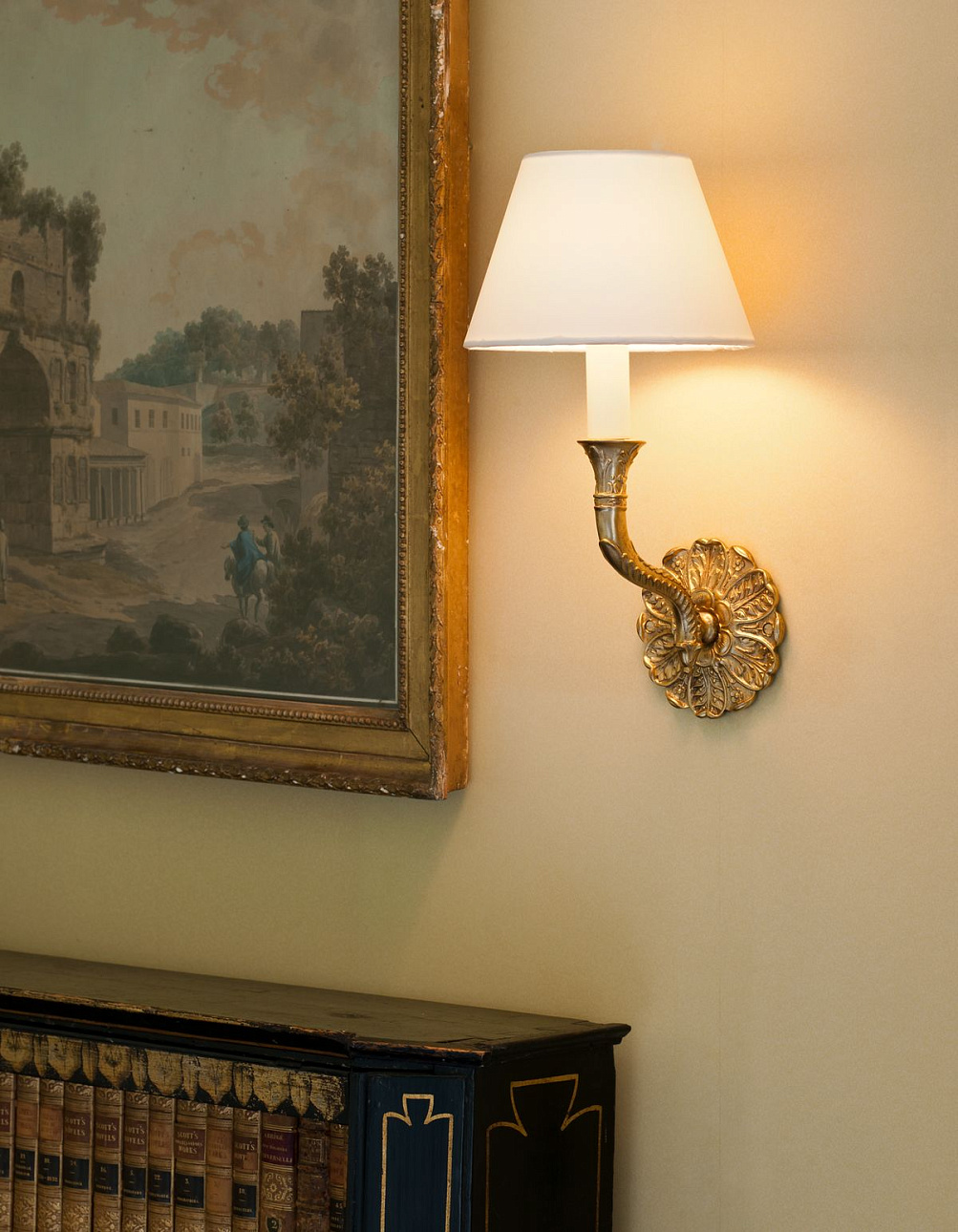 Настенный светильник Hidcote Single Arm Wall Light от премиального Английского бренда VAUGHAN изготовлен из основного материала из цельной литой латуни. Декоративные детали отлиты под давлением. Доступный в бронзе или позолоте.