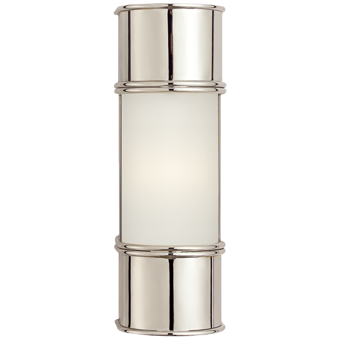 Бра Oxford от премиального американского бренда Visual Comfort. Стальной корпус в отделке полированный никель, со вставкой из матового белого стекла. Работает от лампочки максимальной мощностью 60 Вт. Основание: 9 х 30 см.