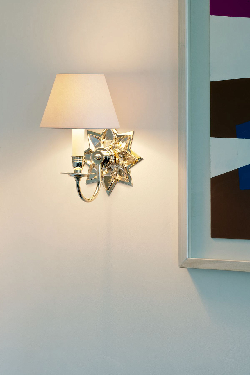 Настенный светильник Polaris Wall Light от премиального Английского бренда VAUGHAN имеет граненую звезду из хрусталя. Он демонстрирует эффективное сочетание никелированной латуни и стекла. Изготавливается в двух вариантах.