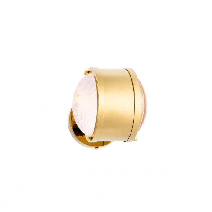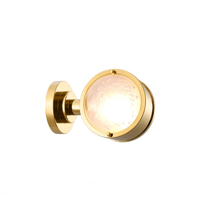 Бра STEFANO от известного Нидерландского бренда EICHHOLTZ. Корпус металлический золотого цвета. Стекло выпуклое с большим количеством пузырьков. Предназначено для одной лампочки 40 Ватт с цоколем E14.