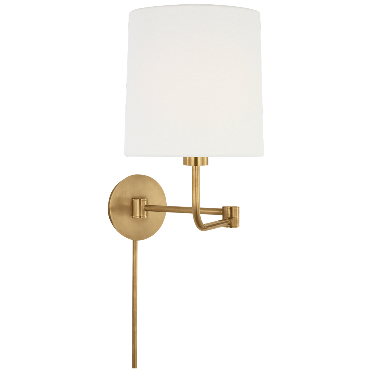 Бра Swing от премиального американского бренда Visual Comfort. Основание выполняется из металла в отделке матовая латунь. Абажур изготавливается из льна белого цвета. Светильник работает от лампочки максимальной мощностью 60 Вт. Абажур: 21 х 22 х 23 см