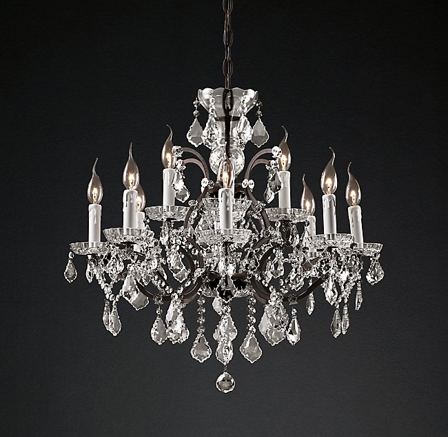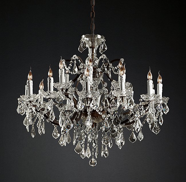 Люстра 19TH C. ROCOCO IRON & CLEAR CRYSTAL ROUND от премиального Американского бренда Restoration Hardware Основание изготовлено из железа, имеет хрустальные элементы, а также лампы в виде свечей.