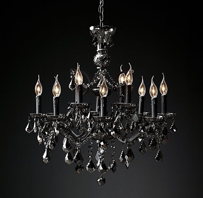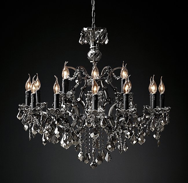 Люстра 19TH C. ROCOCO IRON & SMOKE CRYSTAL ROUND от премиального Американского бренда Restoration Hardware Основание изготовлено из железа, имеет хрустальные элементы, а также лампы в виде свечей. Имеет матовую текстуру.