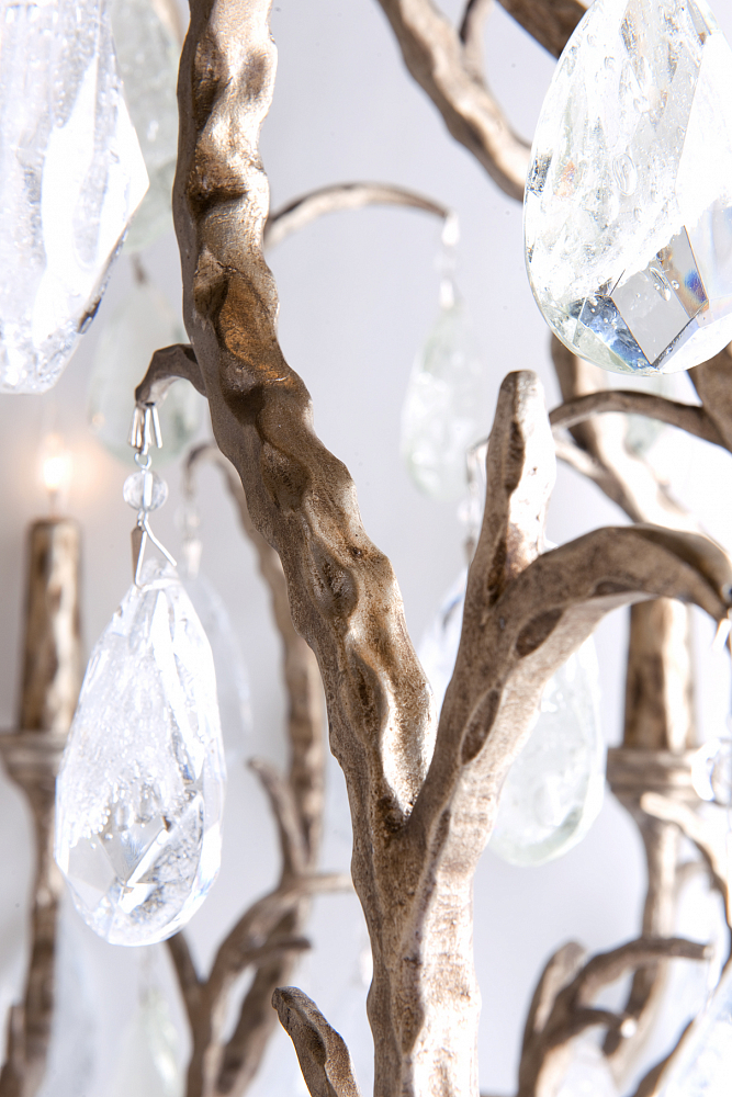 Люстра Amadeus от премиального американского бренда Corbett с каркасом из бронзы. Лампы расположены в металлических подсвечниках, закрепленных на каркасе бронзового цвета. Каркас имитирует переплетающиеся ветви дерева, декорированные каплями из итальянского стекла. Благодаря роскошному классическому дизайну эта люстра станет центров притяжения вашего интерьера.