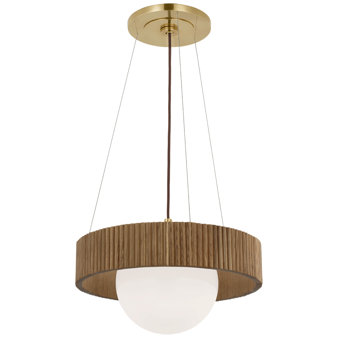 Люстра Arena от премиального американского бренда Visual Comfort изготавливается из металла в отделке состаренная латунь, натурального дуба и стекла белого цвета. Работает от лампочки максимальной мощностью 60 Вт. Высота общая: 696 см. Размер крепления 22 см.