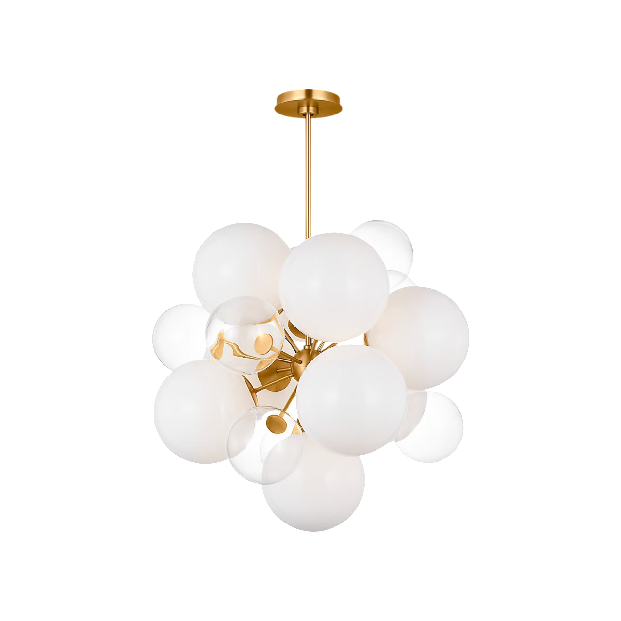 Люстра Aria от премиального американского бренда Generation Lighting изготавливается из металла в отделке полированная латунь, прозрачного стекла и стекла белого цвета. Светильник работает от 9 лампочек максимальной мощностью 40 Вт.