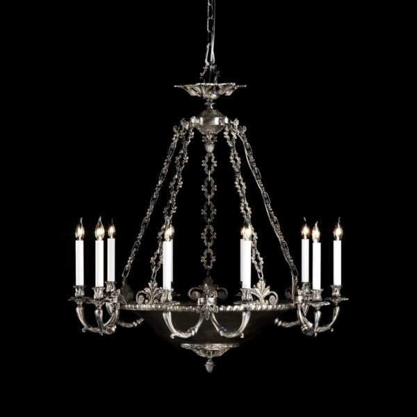 Люстра от премиального итальянского бренда Badari изготавливается из металла в отделке состаренное серебро. Работает от 10 лампочек мощностью 60 Вт и цоколем Е14.
