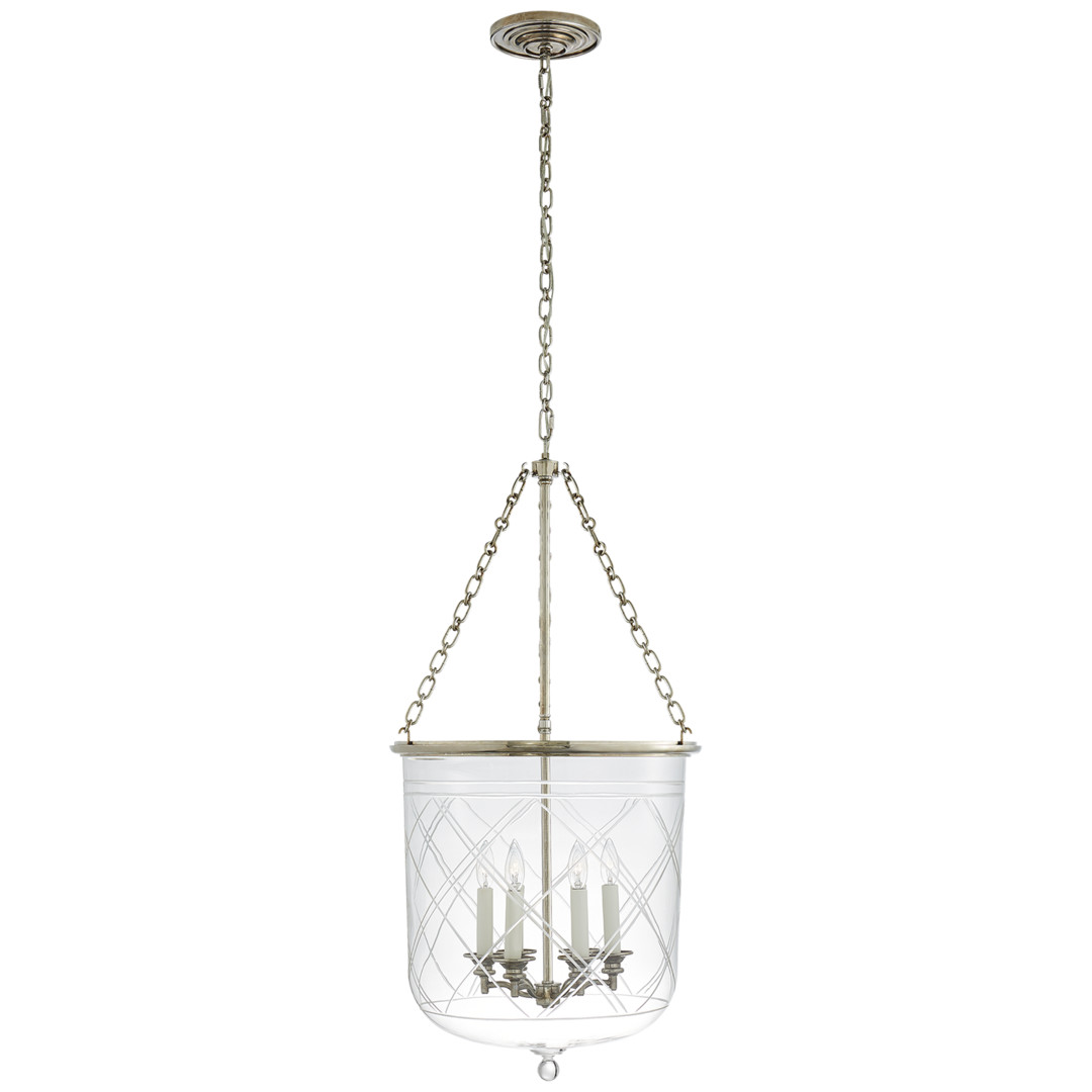 Люстра Cambridge от премиального американского бренда Ralph Lauren Home. Корпус выполнен из стали в отделке "посеребрение" и дополнен прозрачным стеклянным куполом с узорами. Работает от 6 лампочек максимальной мощностью 60 Вт.