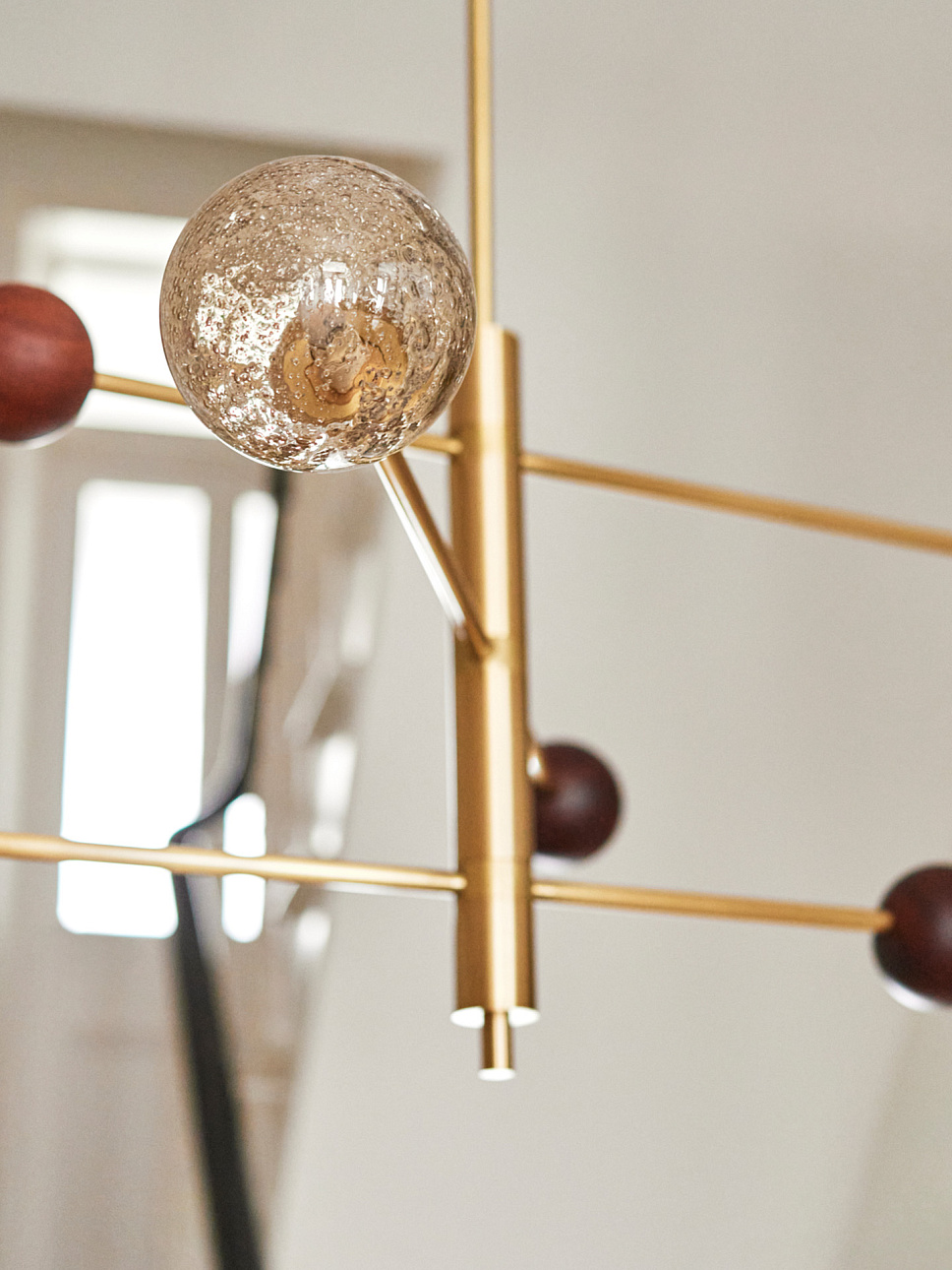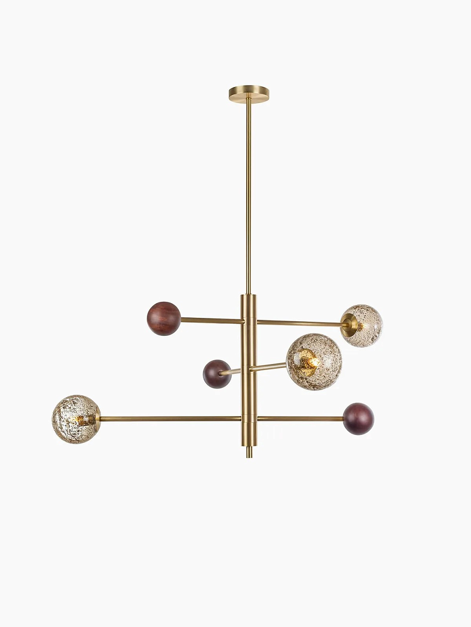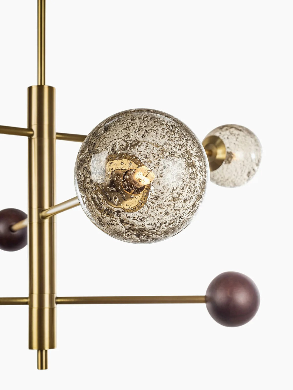 Люстра Carter от премиального английского бренда Heathfield & Co изготавливается из металла в латунной отделке. Абажуры выполняются из стекла и дуба. Светильник работает от 3 лампочек максимальной мощностью 40 Вт, G9.