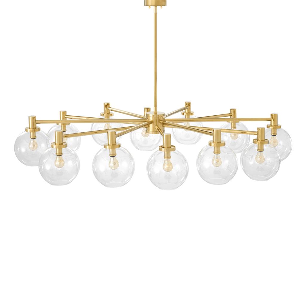 Подвесной светильник Chandelier Selva от известного бренда Eichholtz. Круглые стеклянные плафоны по окружности установлены на металлическое основание золотого цвета.