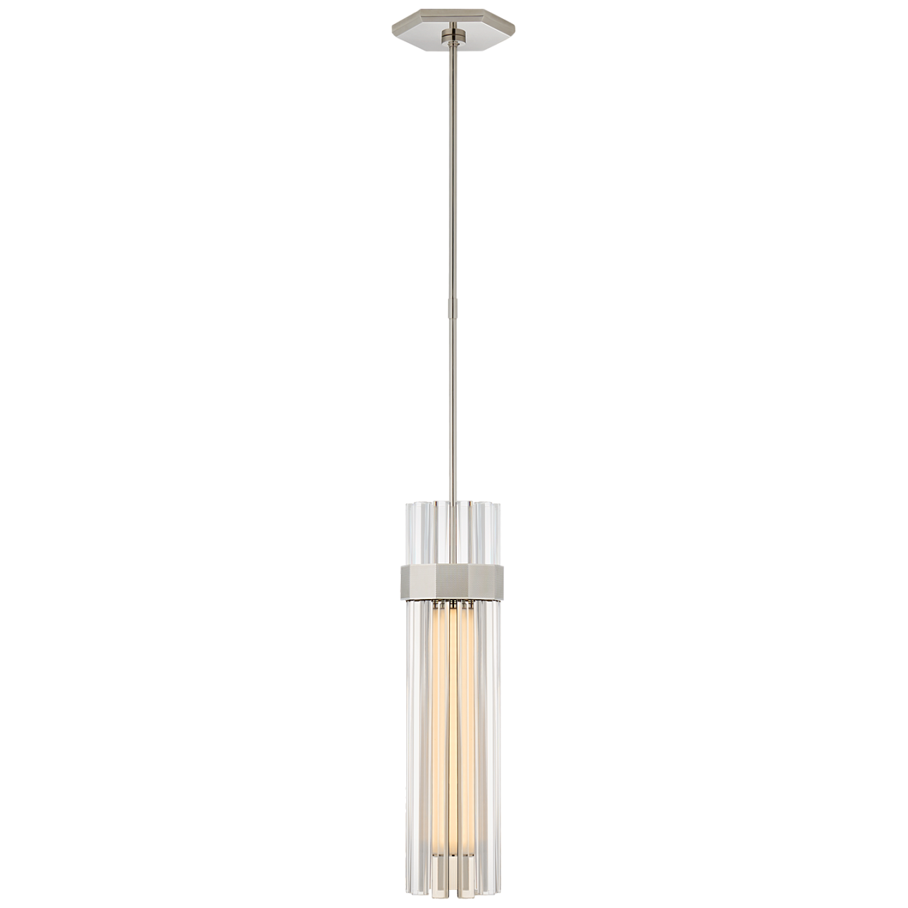 Подвесной светильник Fascio от премиального американского бренда Visual Comfort. Основание изготавливается из металла и покрывается лаком в цвете полированный никель. Плафон выполнен из хрусталя. Светильник работает от LED лампочки.