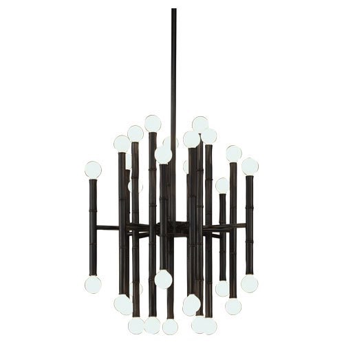 Люстра JONATHAN ADLER MEURICE от премиального Американского бренда ROBERT ABBEY. Дизайнер Jonathan Adler. Стальной корпус бронзового цвета с патиной, в виде трубок. С двух сторон располагаются лампочки. Потолочное крепление регулируемое по высоте. Работает от 30 лампочек типа Глубус, 25 Ватт для патрона E12.
