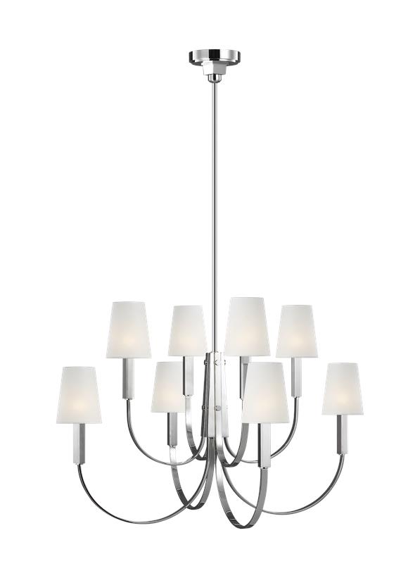 Люстра Logan от премиального американского бренда Generation Lighting изготавливается из металла в отделке полированный никель и льна белого цвета. Светильник работает от 8 лампочек с максимальной мощностью 60 Вт. Абажур: 15.2 х 12.7 см.