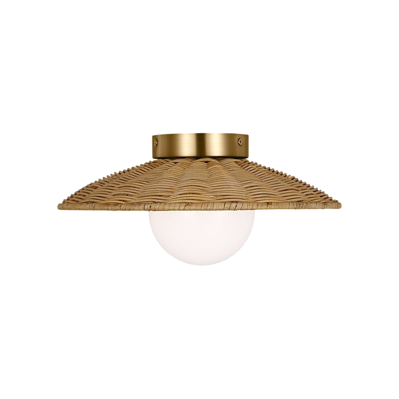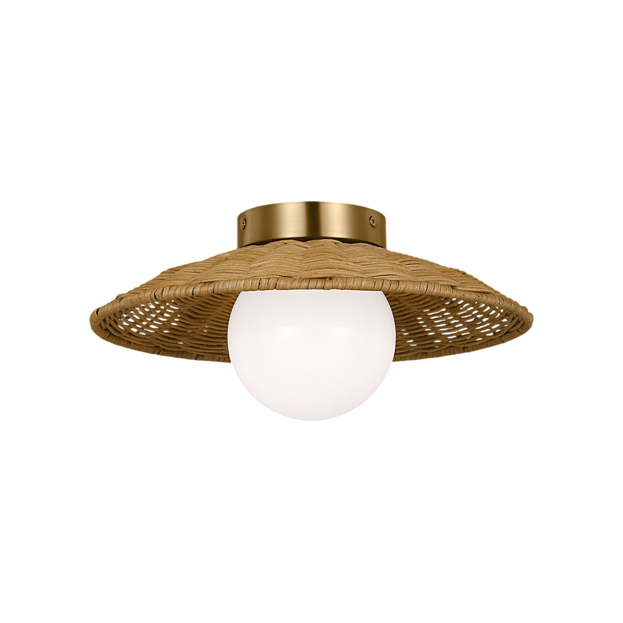 Подвесная лампа Mari от премиального американского бренда Generation Lighting изготавливается из металла в отделке полированная латунь, ротанга и из стекла белого цвета. Светильник работает от 1 лампочки максимальной мощностью 60 Вт.