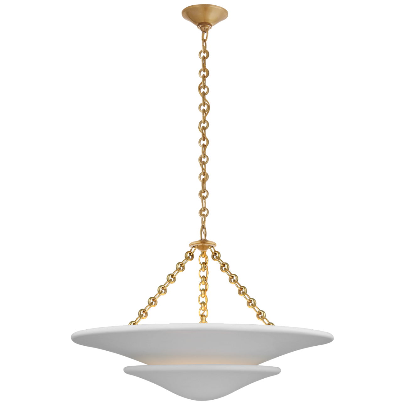 Люстра Mollino от премиального американского бренда Visual Comfort. Основание изготавливается из металла, затем покрывается эмалью в цвете состаренная латунь. Абажур выполнен из гипса белого цвета. Светильник работает от 3 лампочек максимальной мощностью 60 Вт.