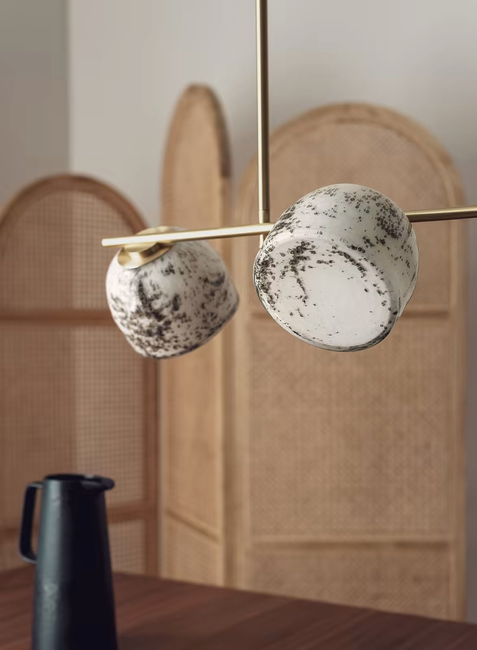 Люстра Orla от премиального английского бренда Heathfield & Co изготавливается из металла в латунной отделке. Абажуры выполняются из стекла. Светильник работает от 3 лампочек максимальной мощностью 40 Вт, G9.