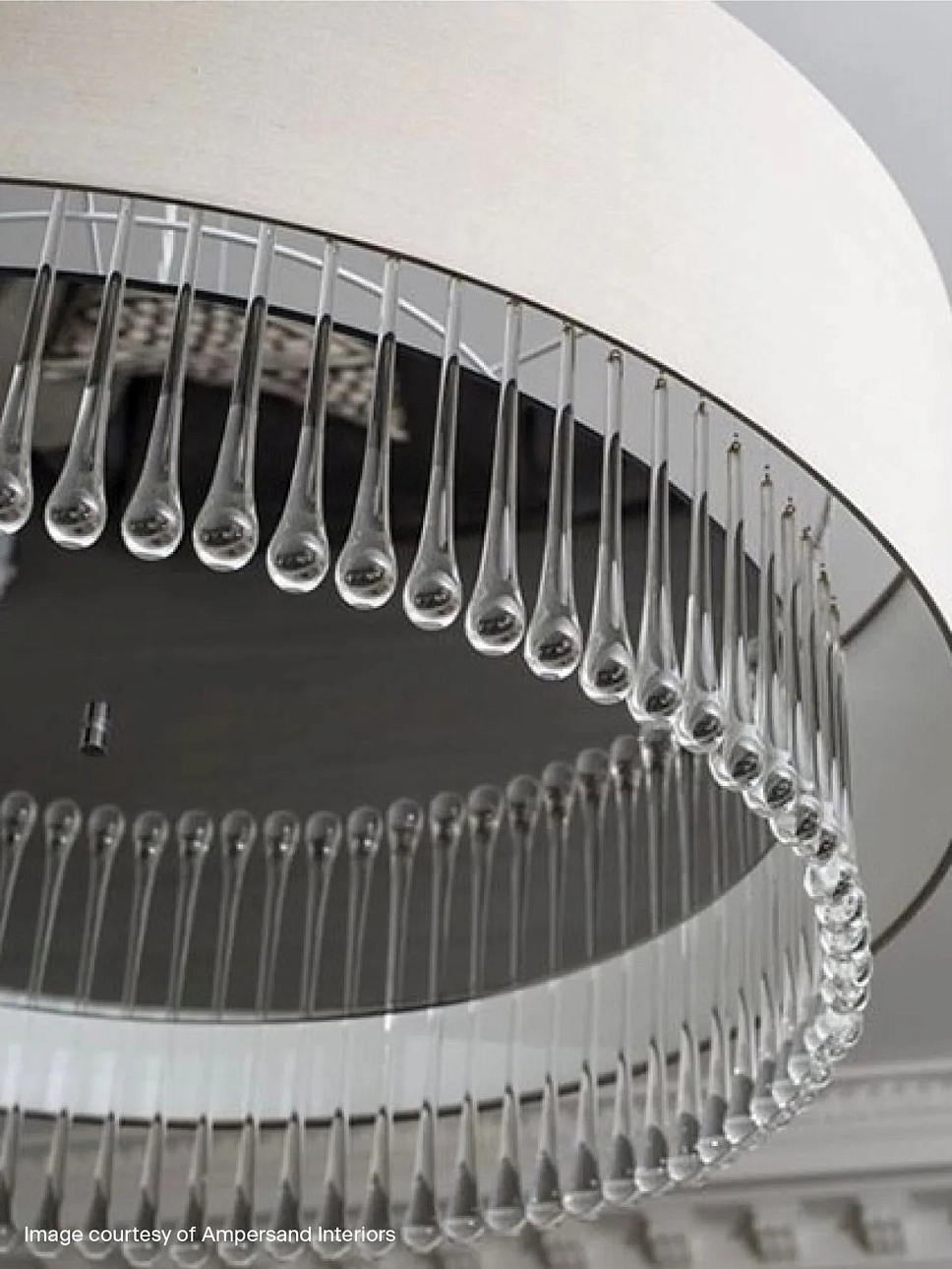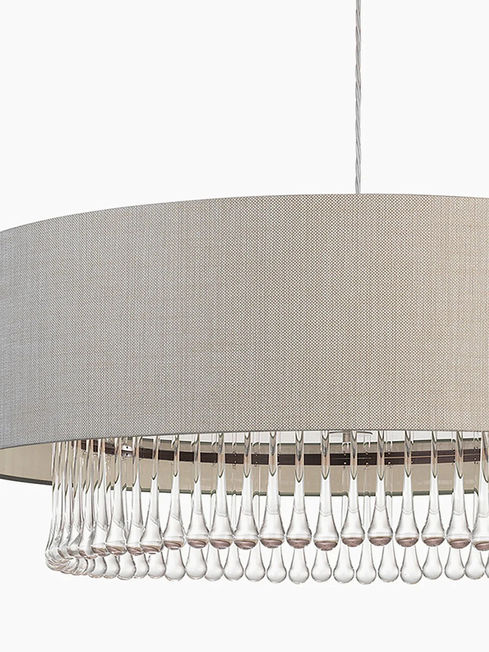 Люстра Roehampton от премиального английского бренда Heathfield & Co изготавливается из стекла и льна. Светильник работает от 3 лампочек максимальной мощностью 60 Вт, E27.