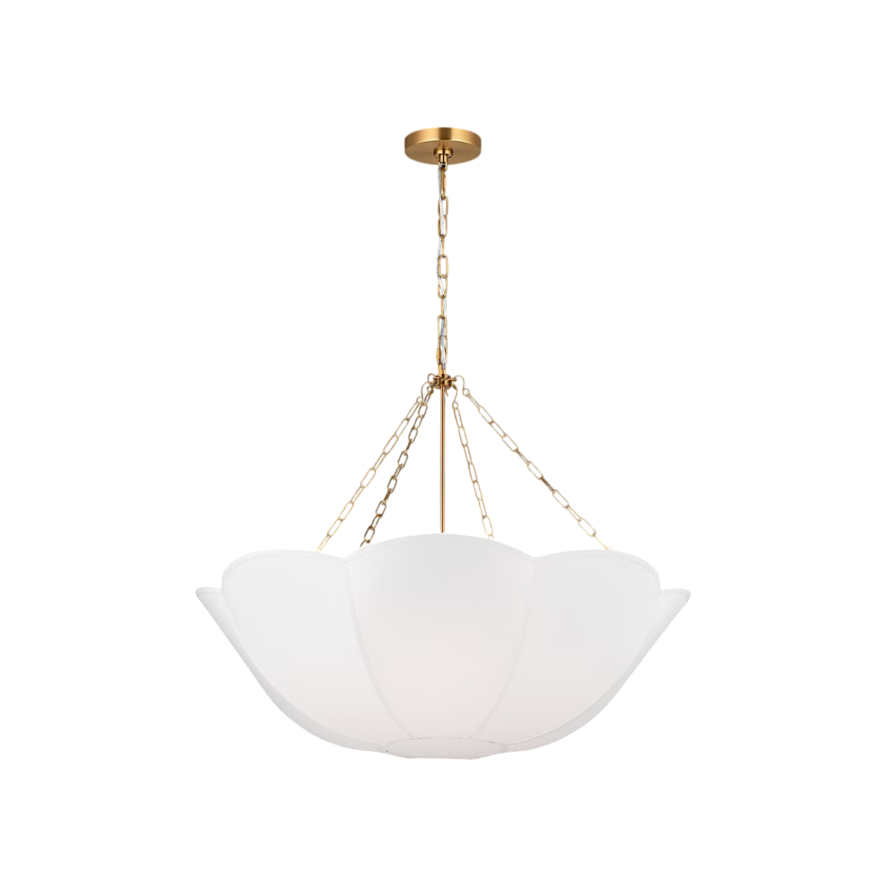Люстра Stassi от премиального американского бренда Generation Lighting изготавливается из металла в отделке состаренная латунь и льна белого цвета. Светильник работает от 4 лампочек максимальной мощностью 60 Вт. Максимальная высота - 234 см.
