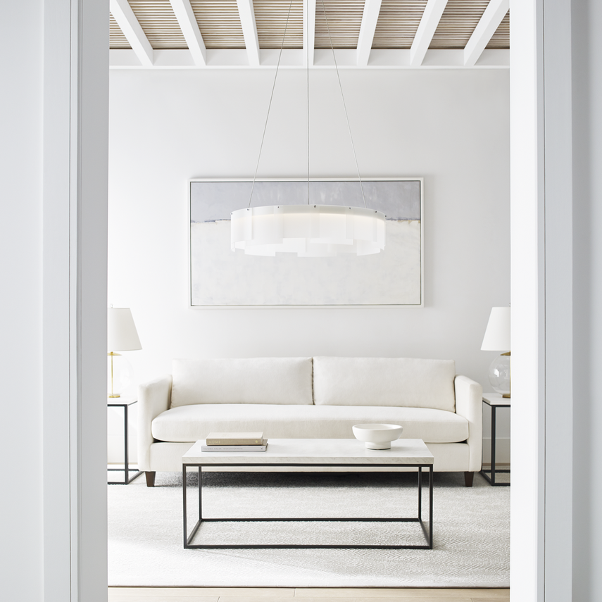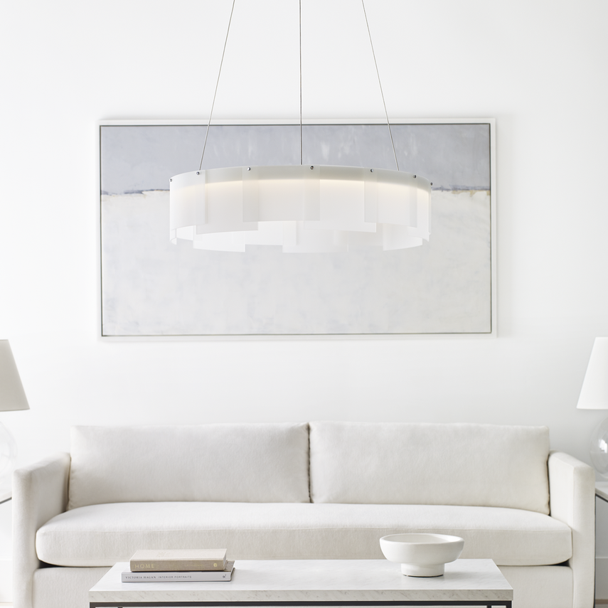 Люстра Stratos от премиального американского бренда Tech Lighting изготавливается из металла в отделке полированный никель и матового стекла. Работает от LED лампочки мощностью 50 Вт, 3142 Лм.