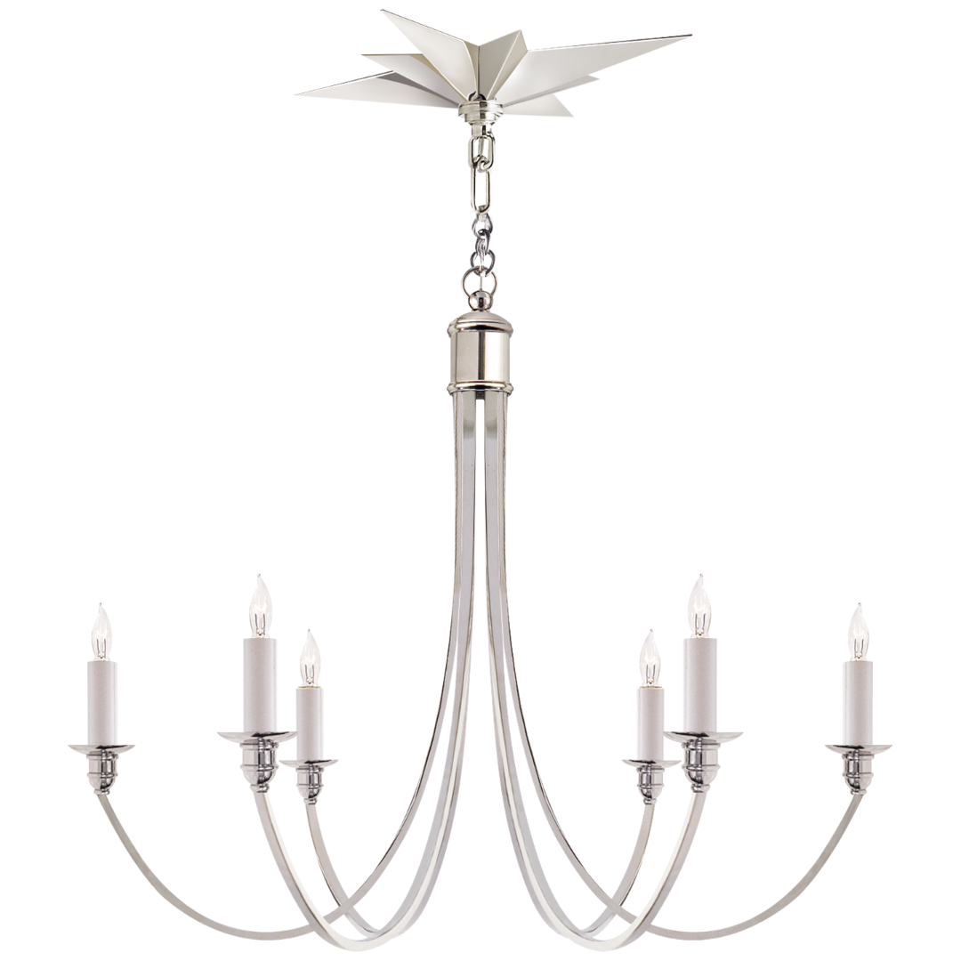 Люстра Venetian от премиального американского бренда Visual Comfort изготавливается из металла в отделке полированный никель. Работает от 6 лампочек максимальной мощностью 60 Вт. Размер крепления: 37 см.