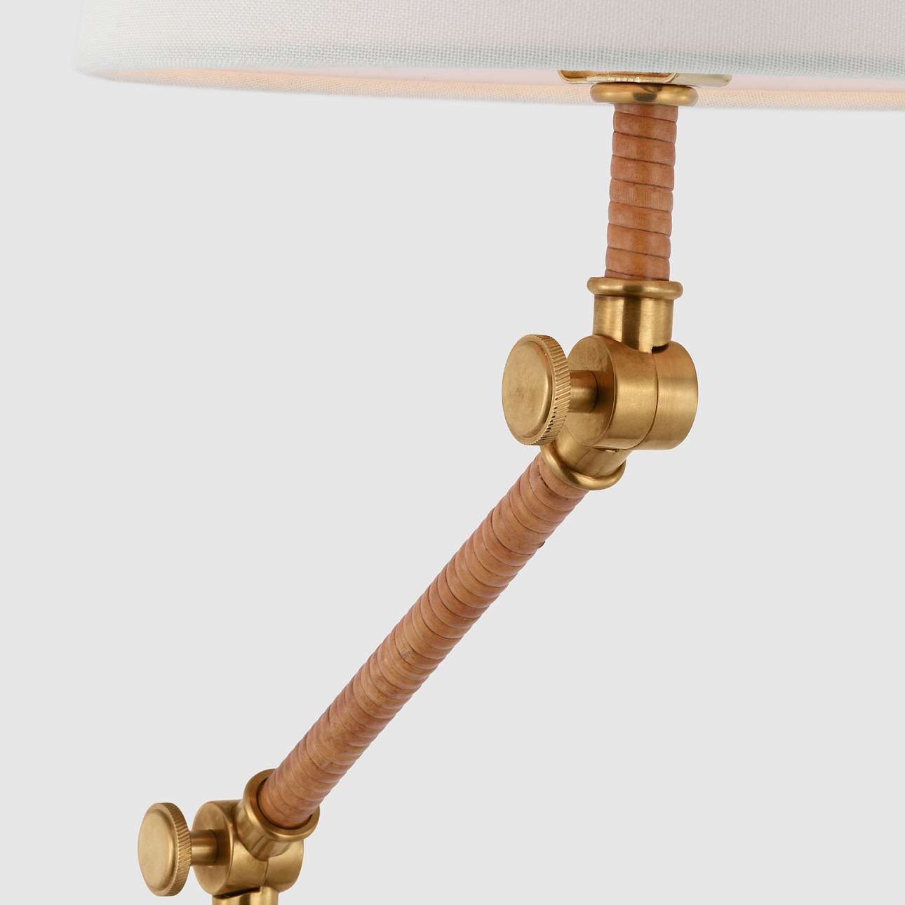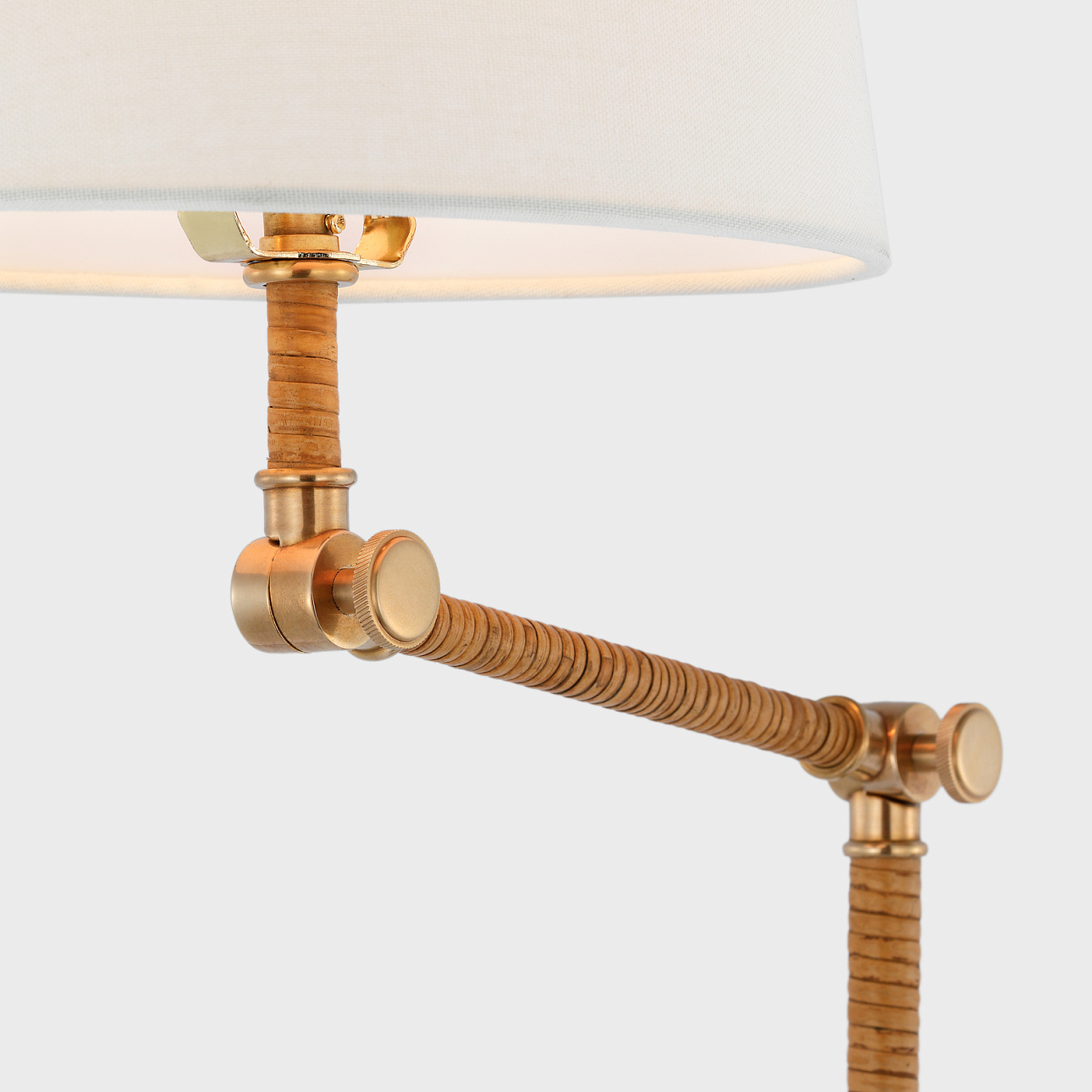 Напольная лампа Basden от премиального американского бренда Visual Comfort изготавливается из металла в отделке состаренная латунь и ротанга. Абажур выполнен из льна. Работает от лампочки мощностью 60 Вт.