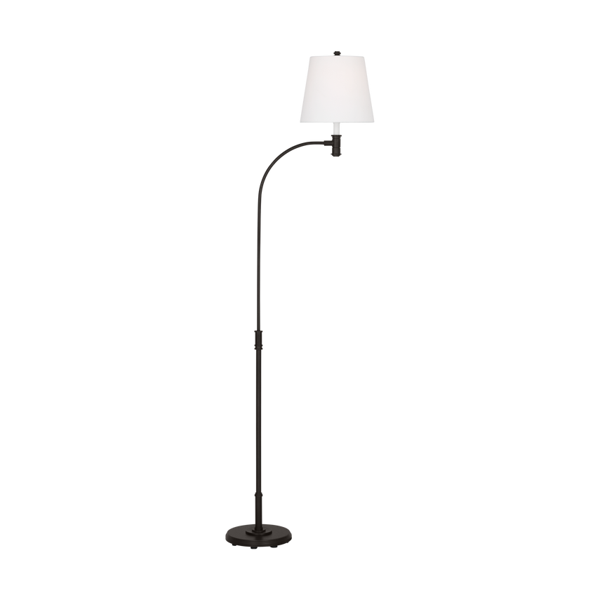 Напольная лампа Belmont от американского премиального бренда Generation Lighting изготавливается из металла в отделке состаренное железо. Абажур выполняется из льна. Светильник работает от лампочки максимальной мощностью 60 Вт.