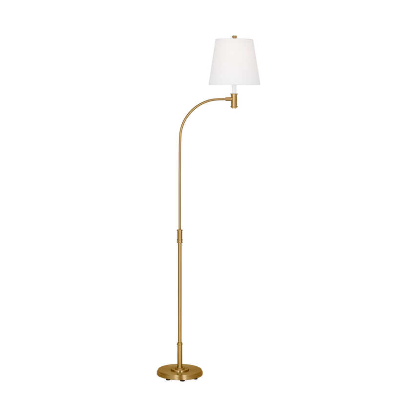 Напольная лампа Belmont от американского премиального бренда Generation Lighting изготавливается из металла в отделке полированная латунь. Абажур выполняется из льна. Светильник работает от лампочки максимальной мощностью 60 Вт.