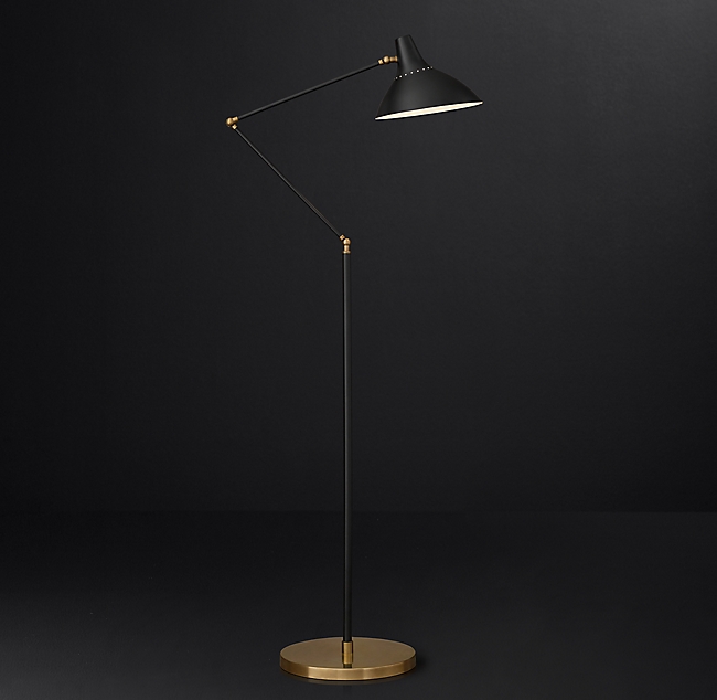 Напольная лампа CHARLTON FLOOR LAMP от премиального Американского бренда Restoration Hardware Ручная работа. Имеет подвижный механизм. Варианты отделки: латунь.