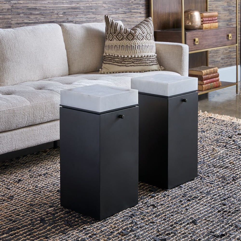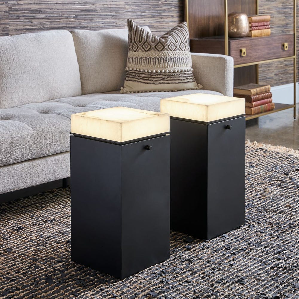 Напольная лампа Enlighten от премиального американского бренда Uttermost — это не только источник освещения, но и функциональный предмет мебели. Стальное основание с черненой отделкой поддерживает столешницу из алебастра со светодиодной подсветкой. Уровень освещения регулируется с помощью диммера, расположенного сбоку от стола. Подходит для светодиодной лампы мощностью 7 Вт (не входит в комплект).