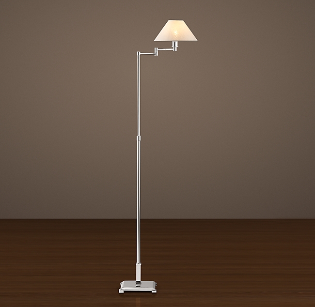 Напольная лампа PETITE CANDLESTICK FLOOR LINEN от премиального Американского бренда Restoration Hardware Плафон изготовлен из льна. Цвет льна: чёрный, песочный, серый, белый. Имеет подвижный механизм. Варианты отделки: бронза, латунь, никель, сталь.